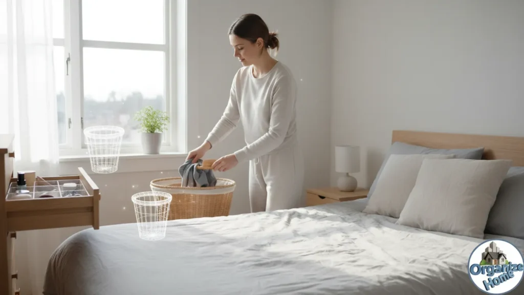 Daytime organization should remain light and practical. This is not the time to reorganize drawers, rethink systems, or make decluttering decisions. Those actions require focus and energy and can easily derail the routine. Daytime habits are about maintenance only.