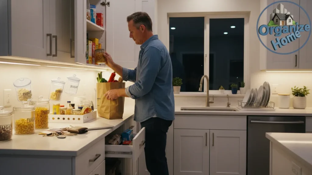 For busy homes and families, a nightly reset creates a shared baseline. Everyone starts the day from the same organized point instead of reacting to yesterday’s mess. This makes morning organization easier and prevents clutter from spreading early in the day.