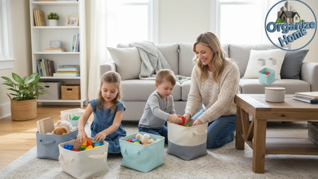 Containment becomes especially valuable in family homes. Toys, backpacks, shoes, and everyday items can be gathered into baskets, bins, or designated zones during the reset. This keeps clutter controlled without requiring detailed organizing or enforcement. Containment allows the reset to happen quickly, even when energy is low.