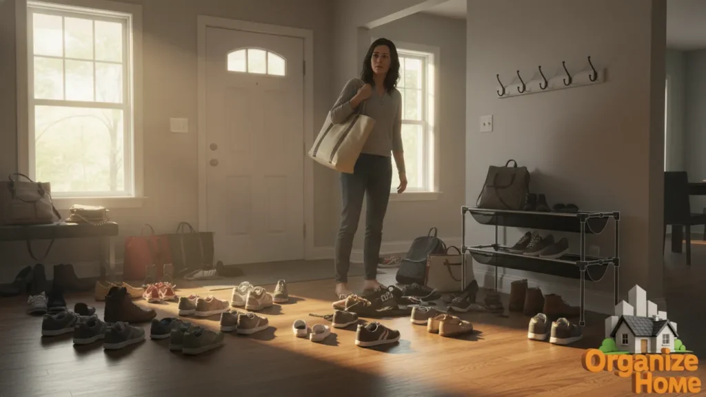 This usually isn’t about extreme clutter or hoarding. It’s about everyday items—jackets, backpacks, mail, reusable bags, toys, chargers, shoes—that slowly multiply over time. Each item may seem harmless on its own, but together they overwhelm shelves, drawers, and surfaces that were never designed to hold them all.